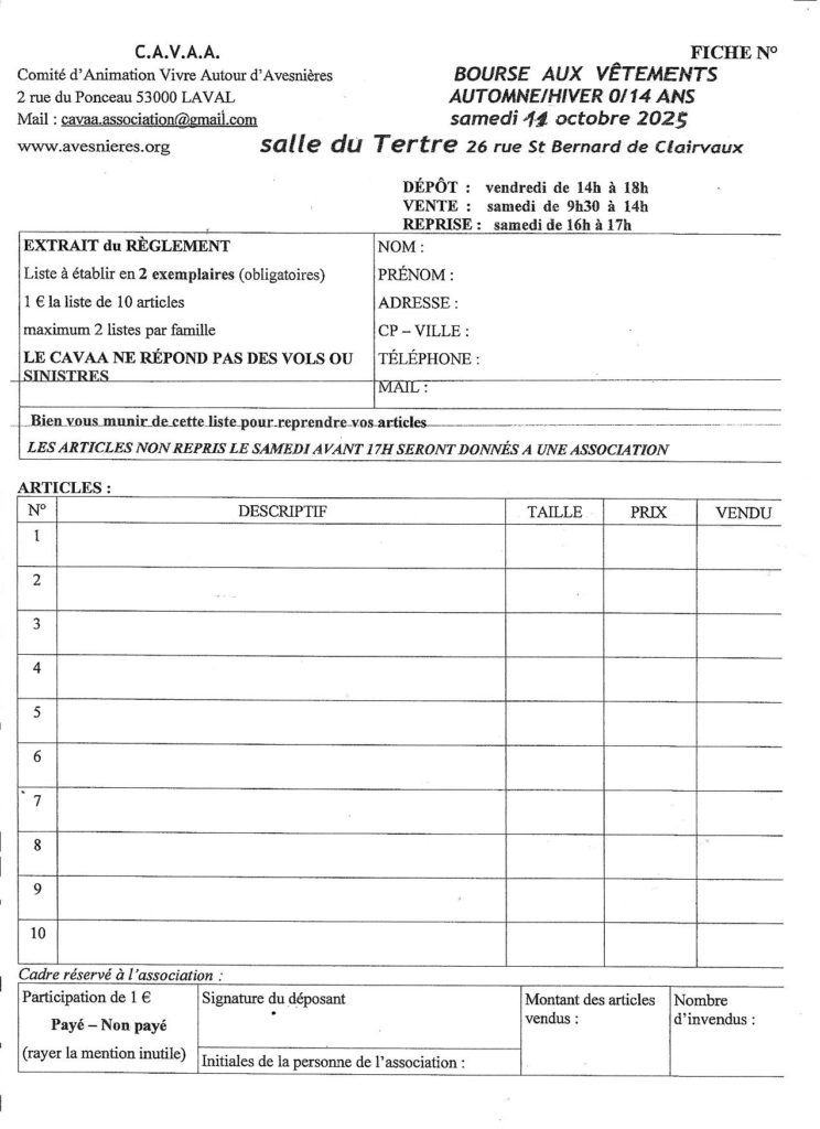 TARIF 8 EUROS pour les adhérents du CAVAA